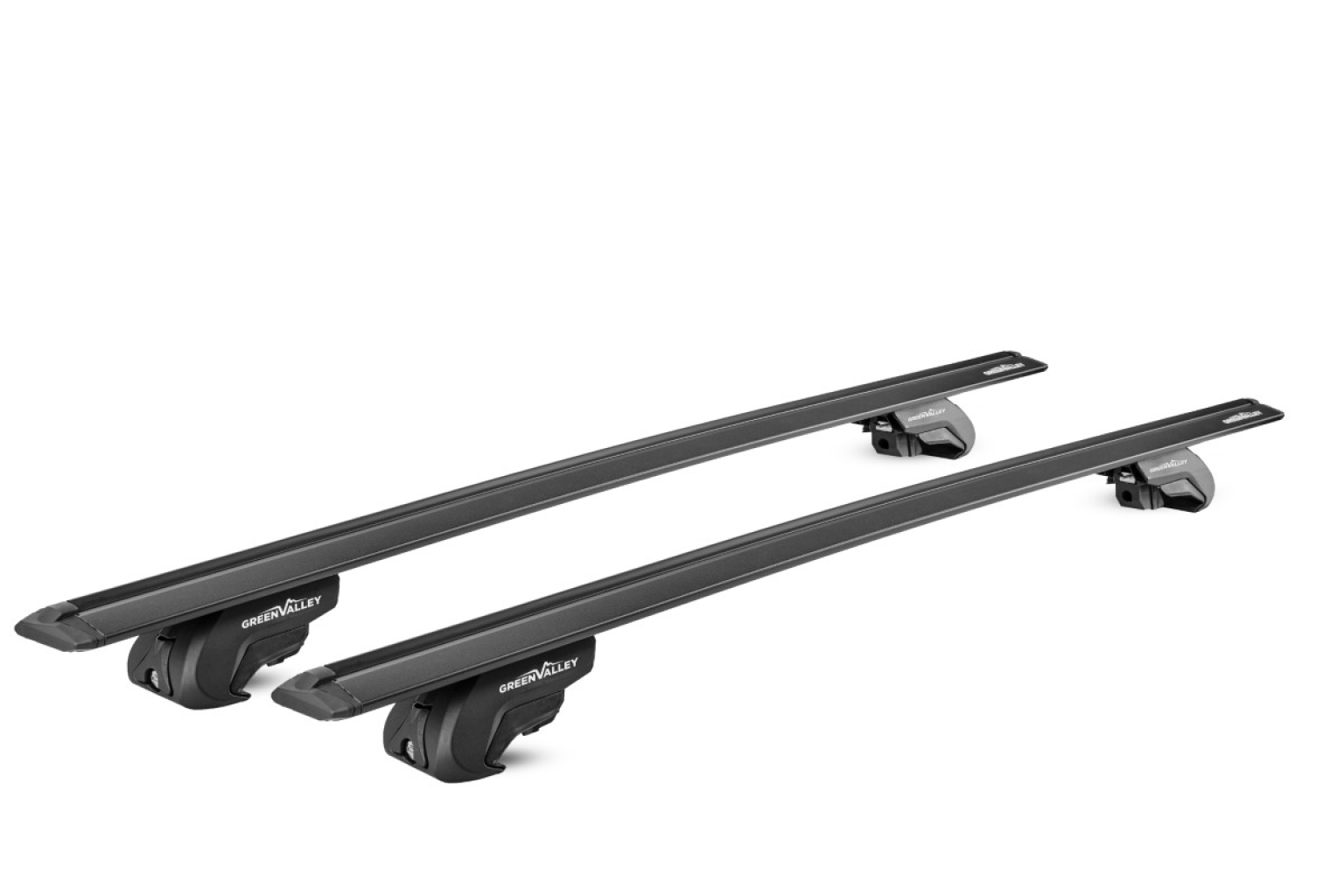Coppia di traverse in alluminio verniciate nero a sezioneasimmetrica con larghezza 80 mm, riduce l’impatto aerodinamico, ilrumore e il consumo di carburante.